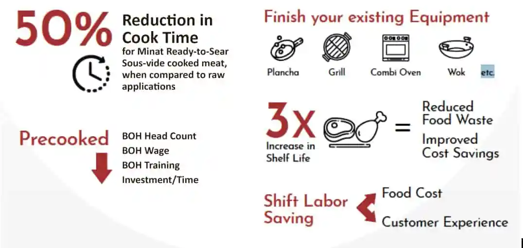 In a demanding, high-volume restaurant or commercial kitchens, utilizing sous vide precooked proteins provides the critical benefit of Streamlined Operations, as well as these incremental benefits to your operation: