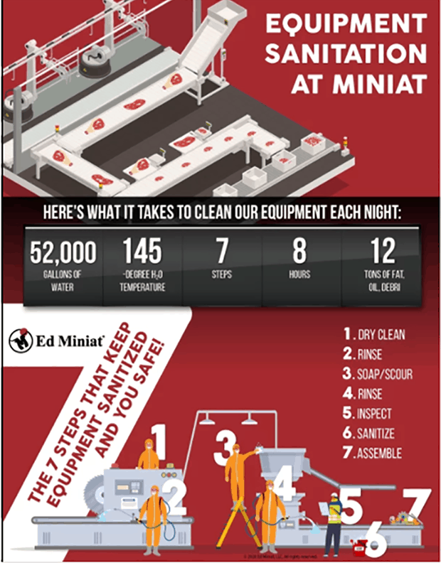 As producers of safe, quality foods, customers trust Miniat to enhance their own food safety standards by supplying pre-cooked proteins to their restaurants and food assemblers. We value our customers’ trust and meet their demand to deliver safe products to their customers, so sanitation practices have always been the top priority to Miniat.